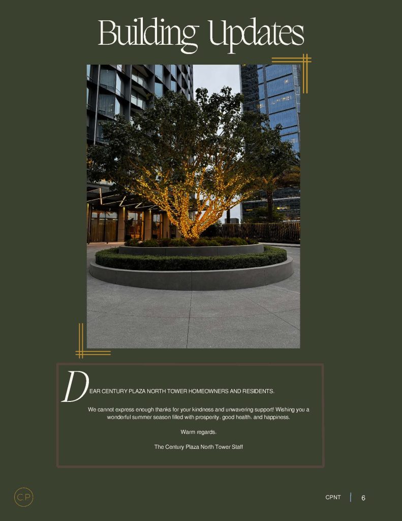 Home / Welcome to Century Plaza North Tower Welcome to Century Plaza North Tower IMG_0015 default IMG_0002 IMG_0008 IMG_0010 Manager’s Messages June Newsletter June 3, 2025 / actionadmin Older Entries>>